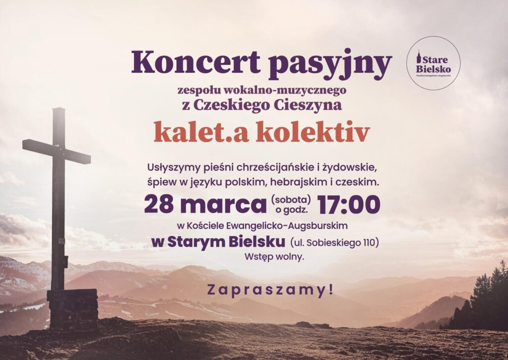 | 28.03.2026 So | 17.00 StB | Koncert pasyjny zespół kalet.a kolektiv z Czeskiego Cieszyna |